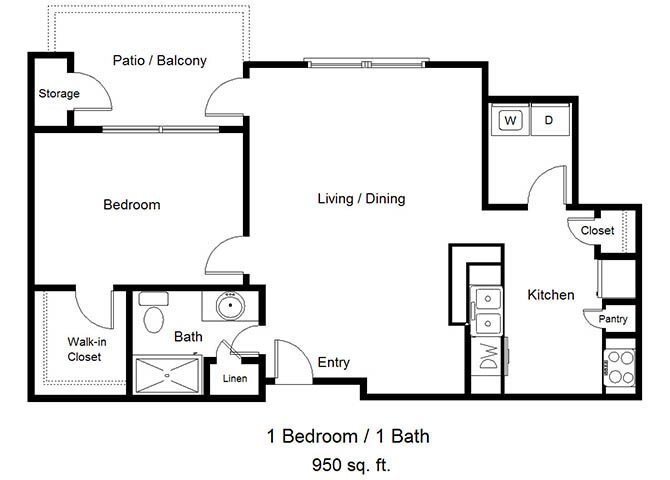 1 Dormitorio, 1 Baño, 950 pies²Disponible AhoraEl más grandeEsta opción tiene las unidades más grandes para este modeloGalería del Modelo