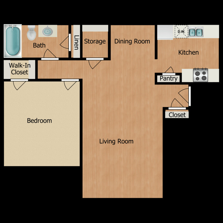 Modelo de apartamento: The Willow$1,0501 Dormitorio, 1 Baño, 640 sq ftDisponible Ahora![]()