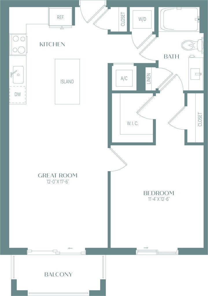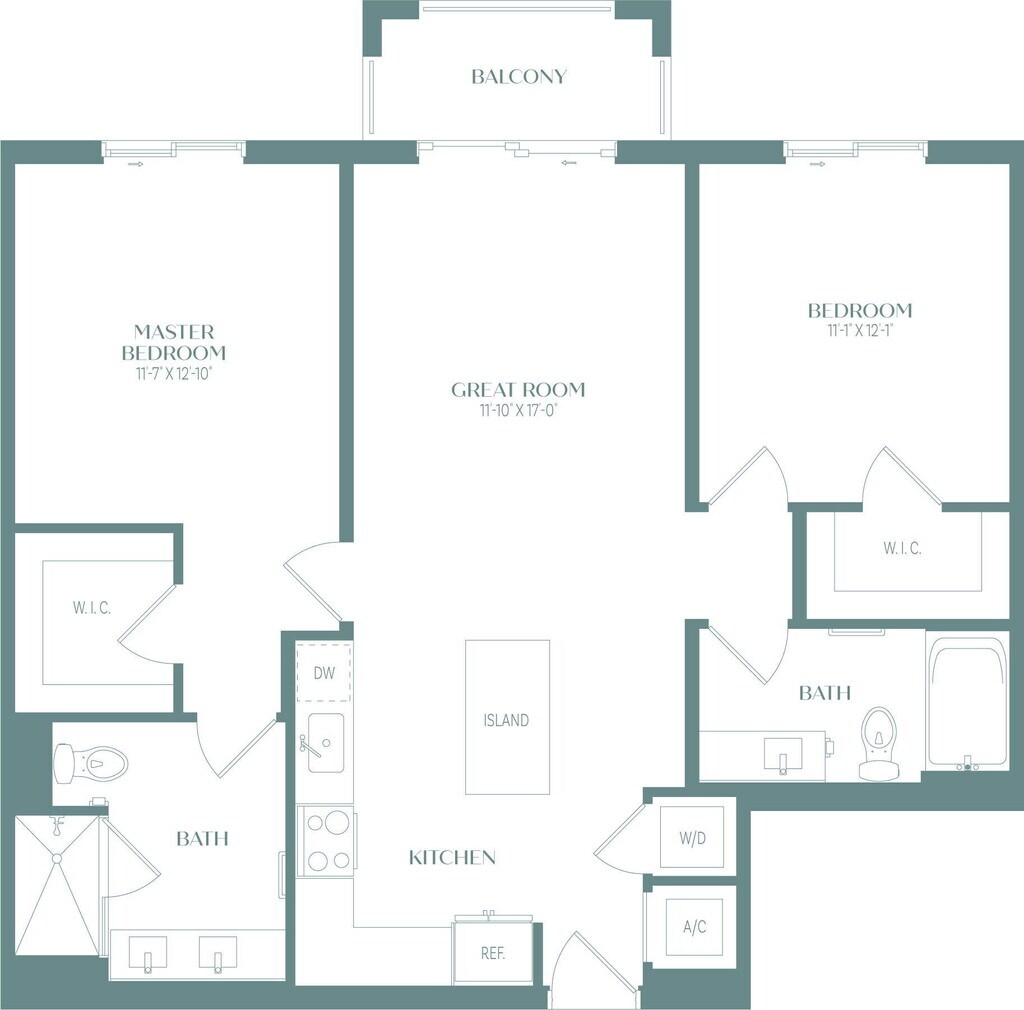 Modelo de apartamento: A1Desde $2,4241 Dormitorio, 1 Baño, 700 sq ftDisponible July 4, 2026![]()