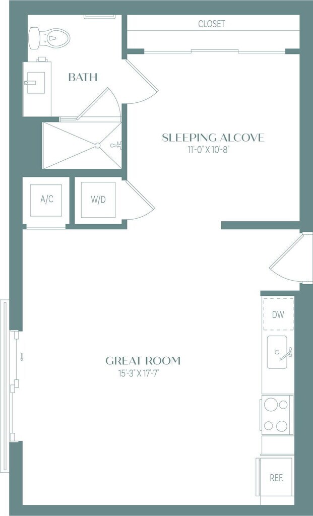 1 Dormitorio, 1 Baño, 603 pies²Disponible Jul 4Galería del Modelo