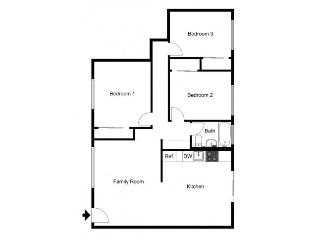Modelo de apartamento: 3x13 Dormitorios, 1 Baño, 1000 sq ftNo Disponible![]()