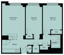 One Bedroom Open Concept - Plano 2 Dormitorios