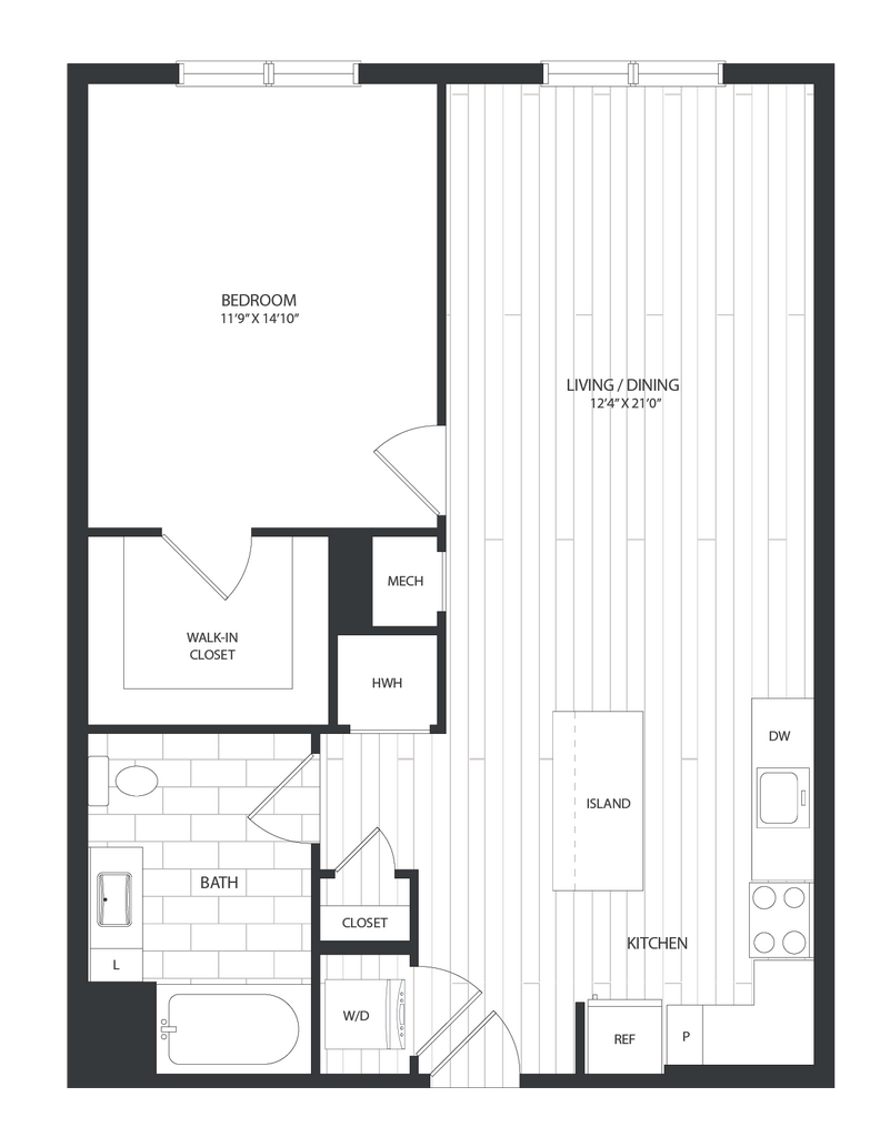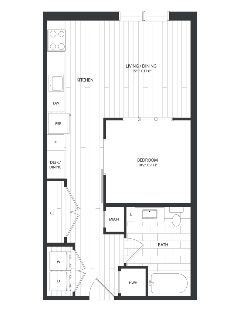 1 Dormitorio, 1 Baño, 839 pies²Disponible AhoraGalería del Modelo