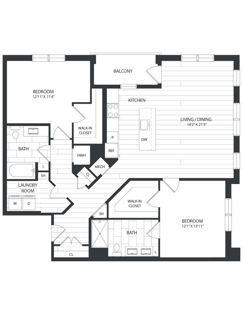 2 Bed/2 Bath-B1F - Plano 1 2 Bed/2 Bath-B1A