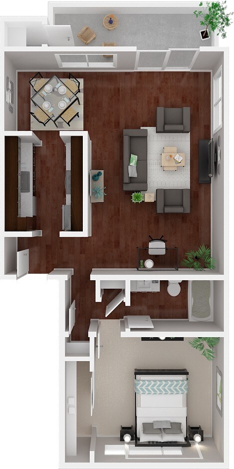 1 Dormitorio, 1 Baño, 748 pies²Disponible AhoraGalería del Modelo