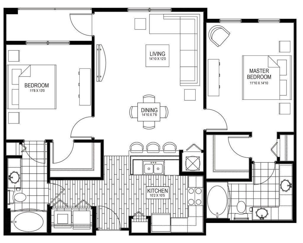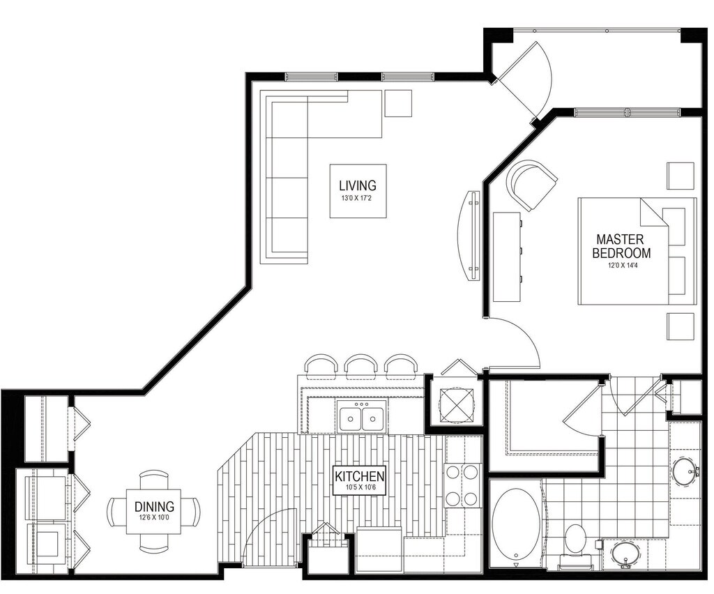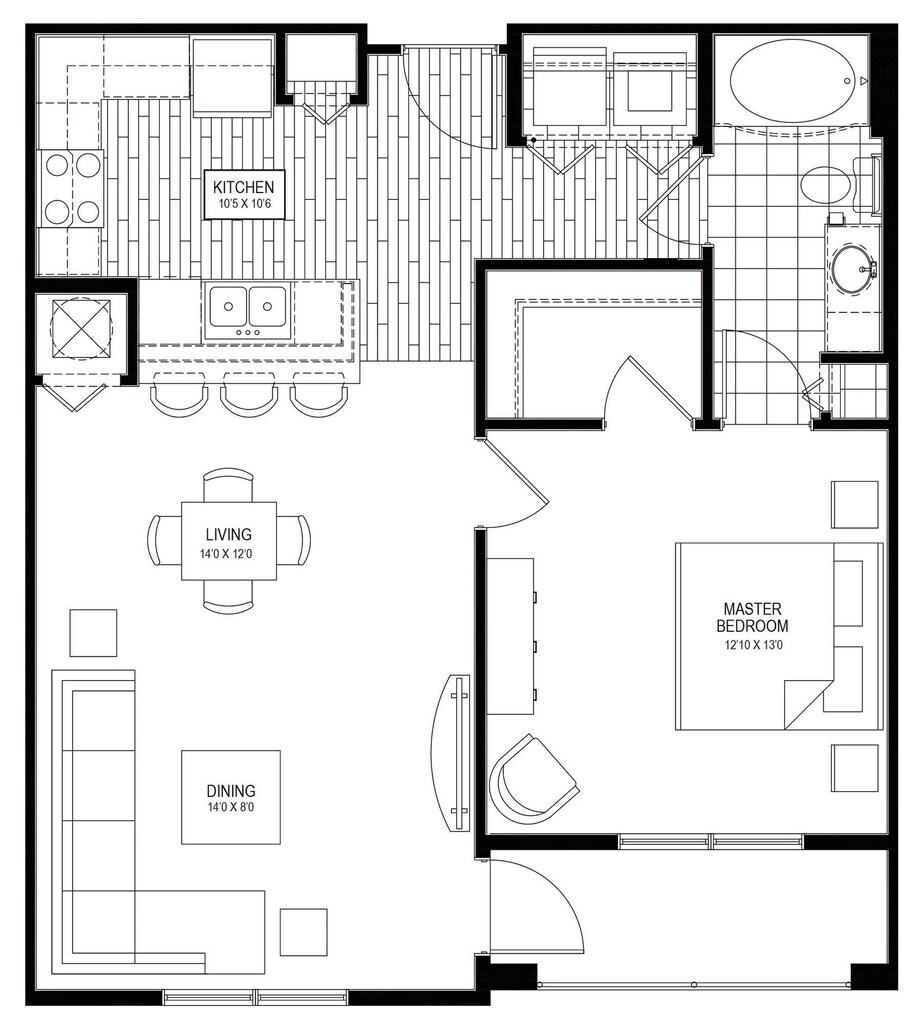 1 Dormitorio, 1 Baño, 876 pies²El más grandeEsta opción tiene las unidades más grandes para este modeloGalería del Modelo