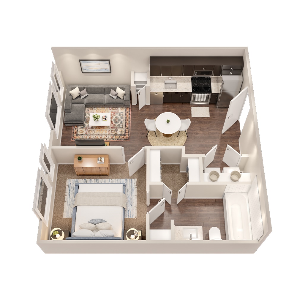 Estudio, 1 Baño, 648 pies²Disponible AhoraEl más grandeEsta opción tiene las unidades más grandes para este modeloGalería del Modelo
