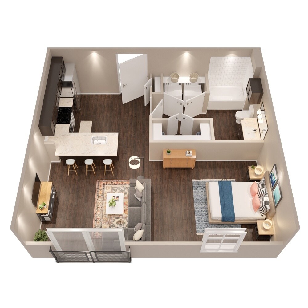 Estudio, 1 Baño, 497-603 pies²Galería del Modelo