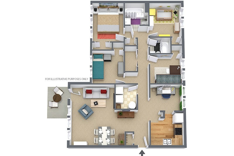 3 Bed 2 Bath Garden - Plano 7 Unidad de apartamento: 212-DModelo de apartamento: 3 Bed 2 Bath GardenLlame para Precios3 Dormitorios, 2 Baños, 1499 sq ftDisponible December 7, 20254 Dormitorios
