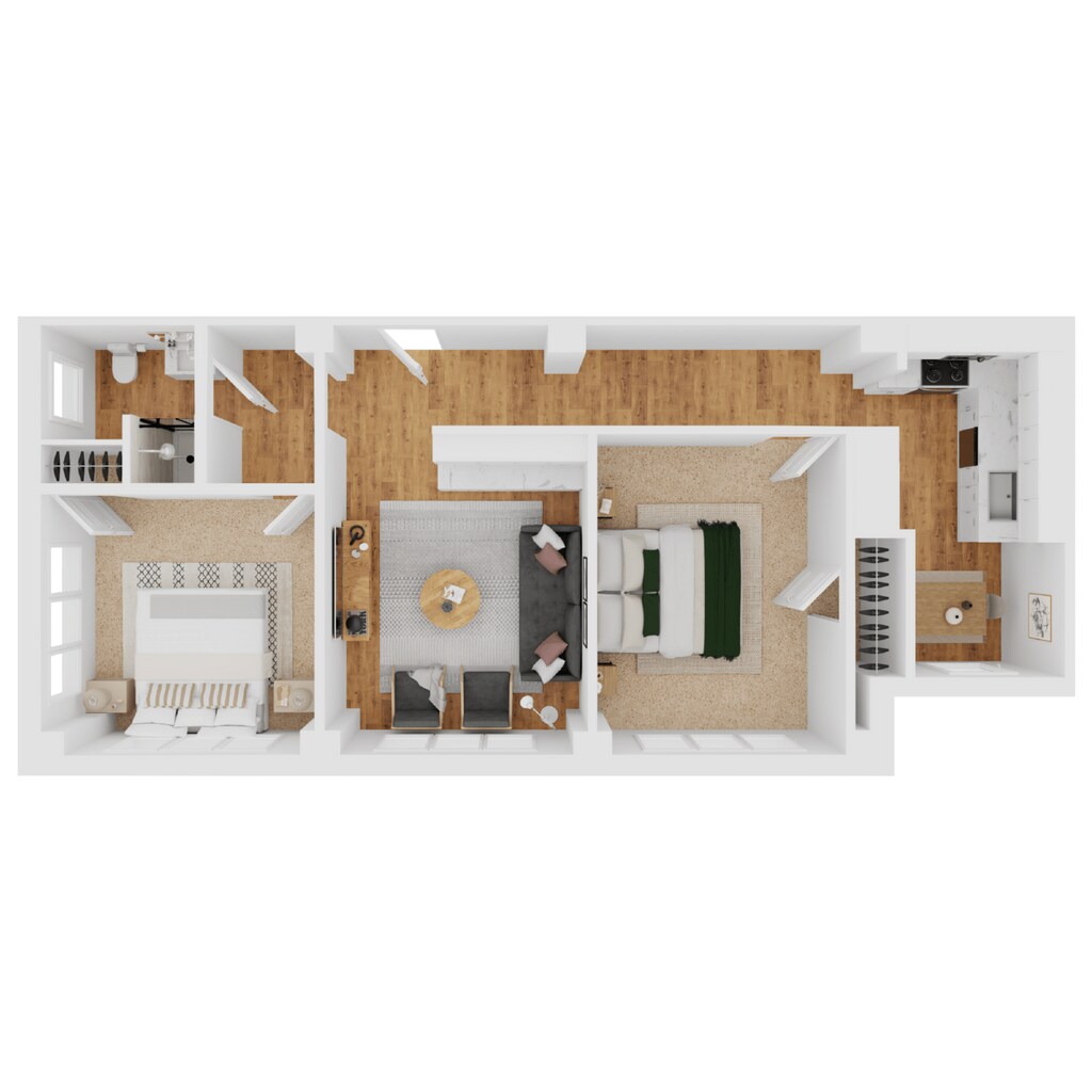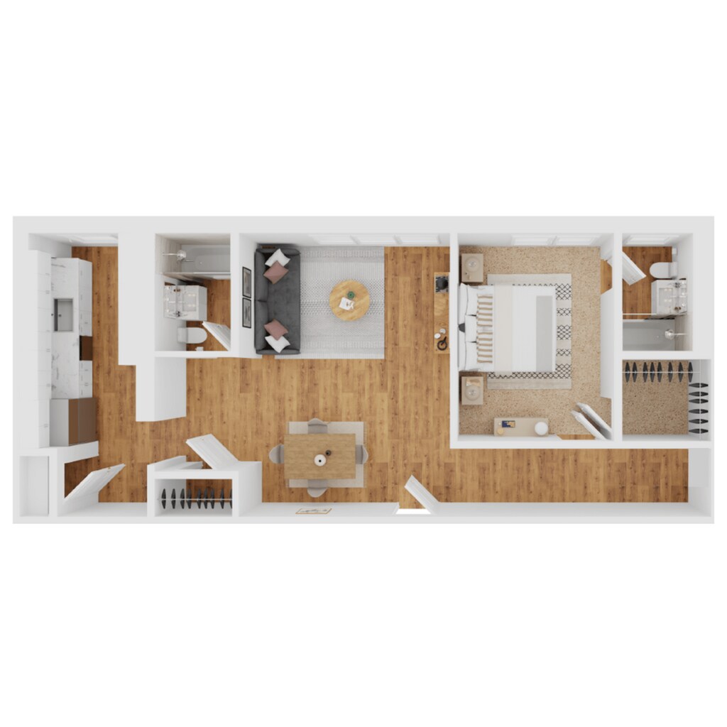 1 Dormitorio, 1 Baño, 747-751 pies²Galería del Modelo