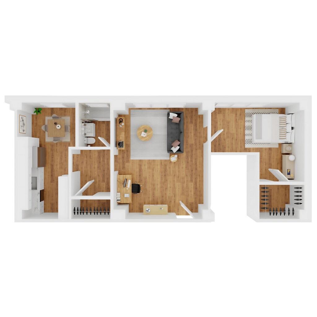 1 Dormitorio, 2 Baños, 672 pies²Galería del Modelo