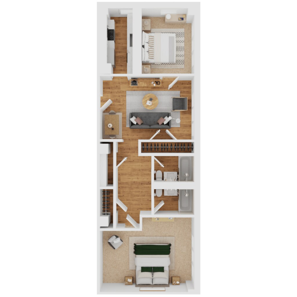 Modelo de apartamento: A2$1,8001 Dormitorio, 1 Baño, 750-753 sq ftNo Disponible![]()