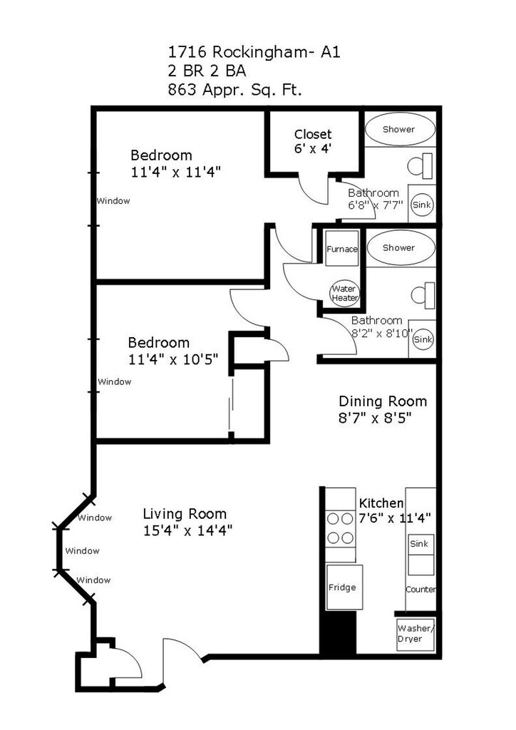 Modelo de apartamento: 2/1 - Westbrook2 Dormitorios, 1 Baño, 924 sq ftDisponible April 17, 2026PlanosFotos![]()