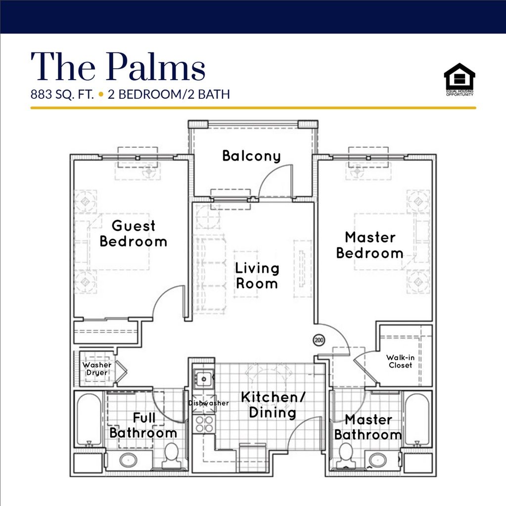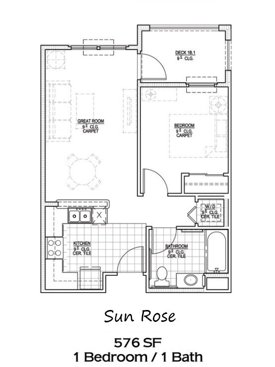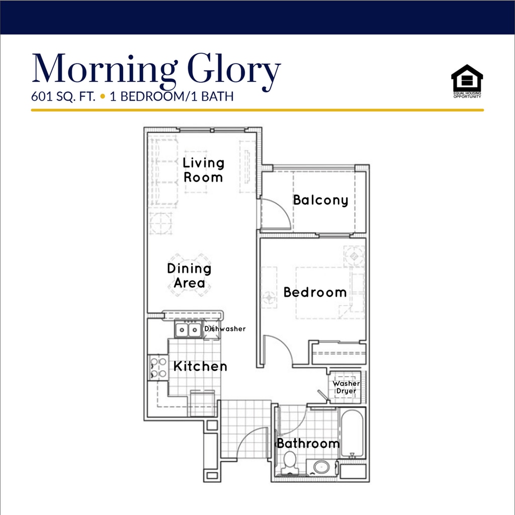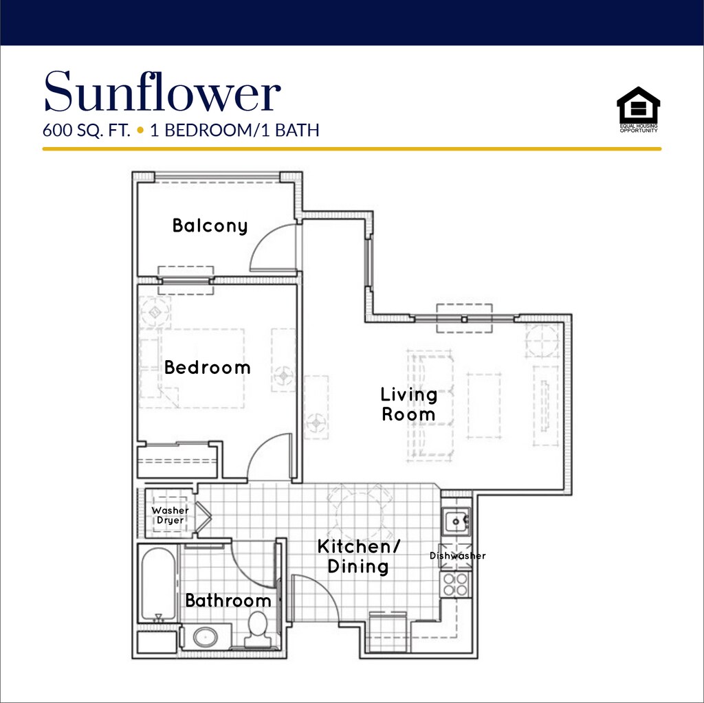 Modelo de apartamento: Sun RoseDesde $2,3051 Dormitorio, 1 Baño, 576 sq ftDisponible AhoraPlanosFotos![]()
