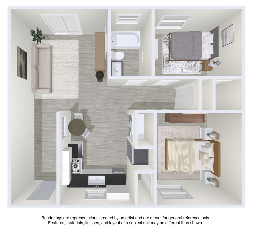 2 Dormitorios, 1 Baño, 850 pies²Disponible AhoraGalería del Modelo