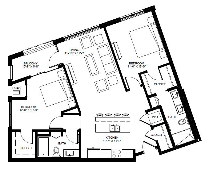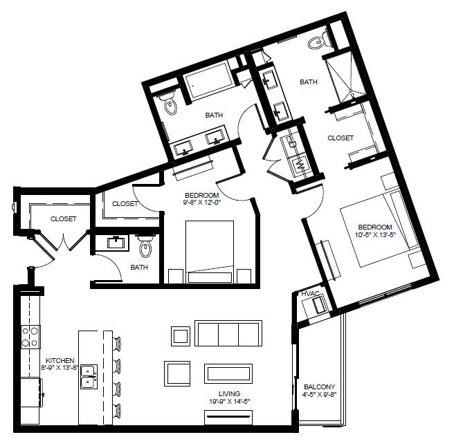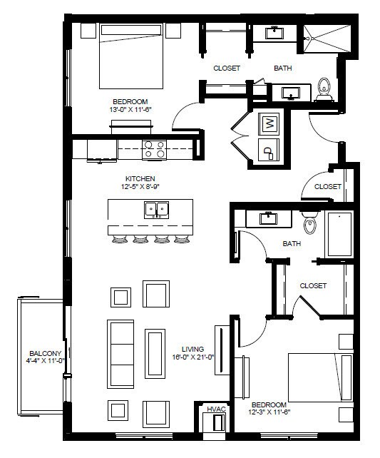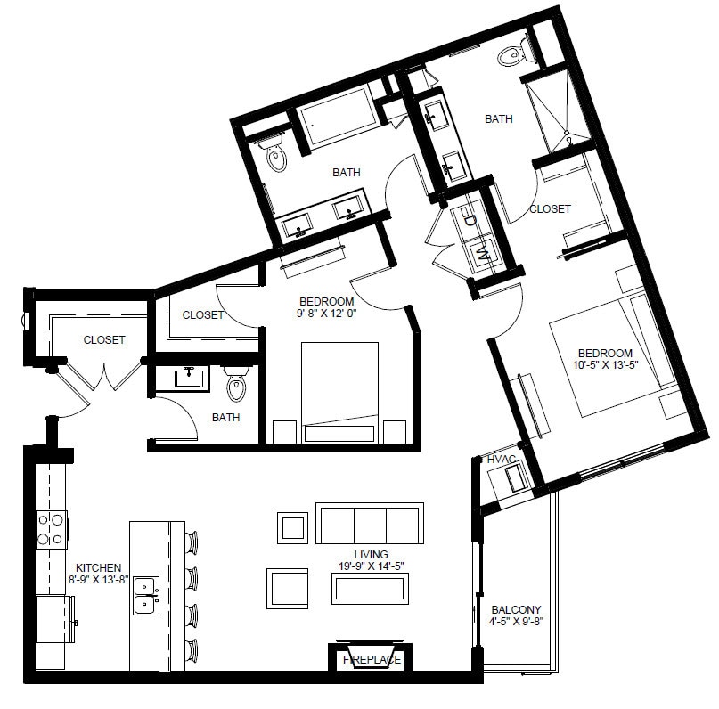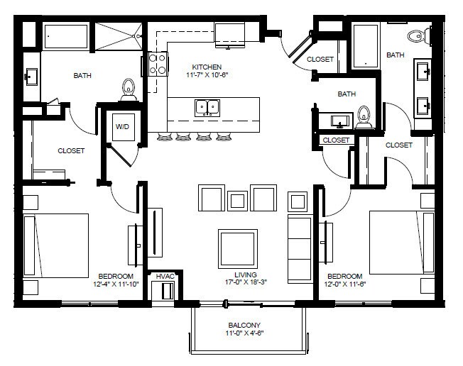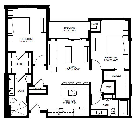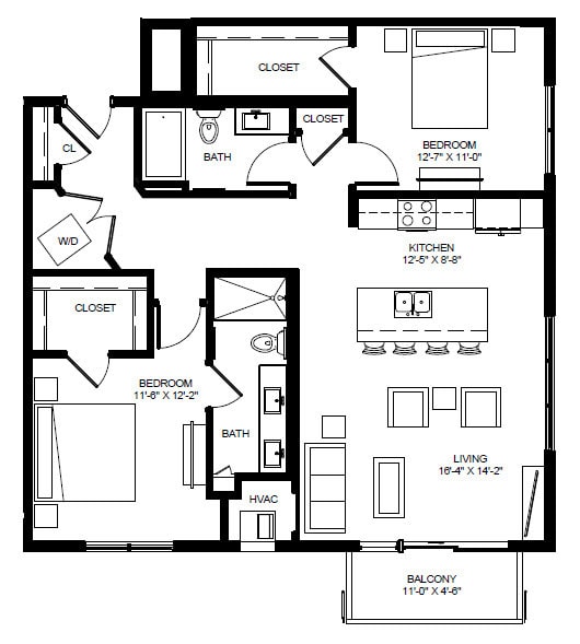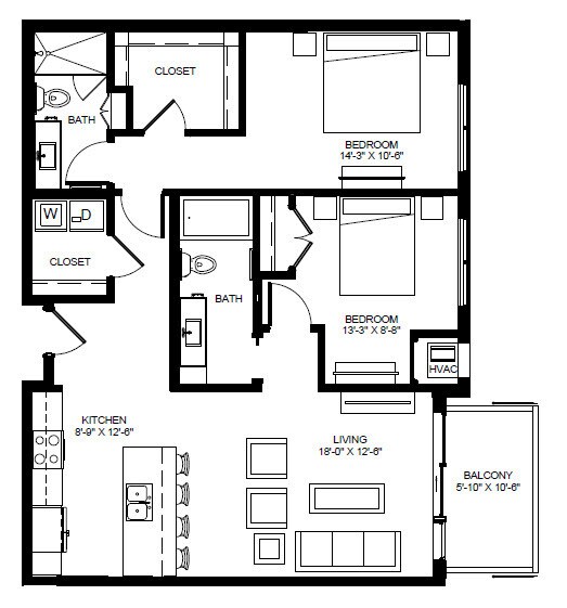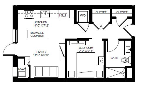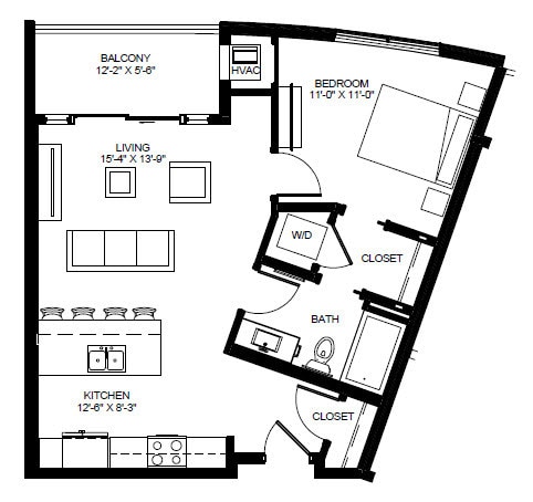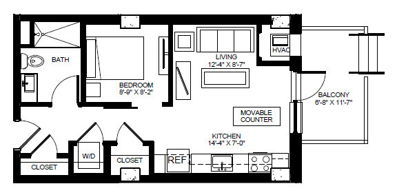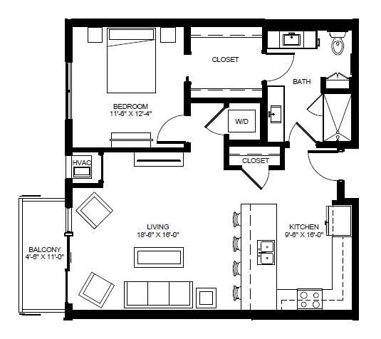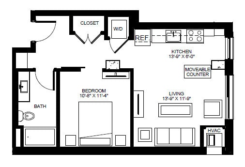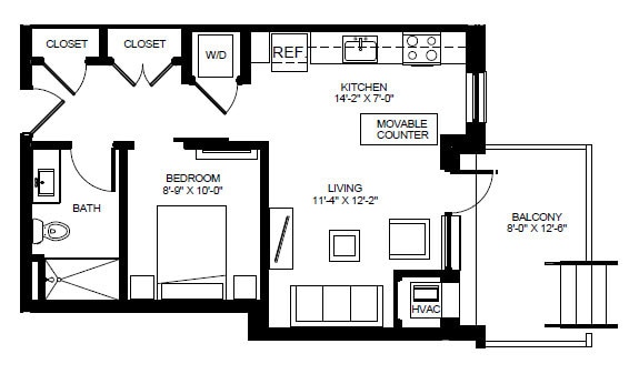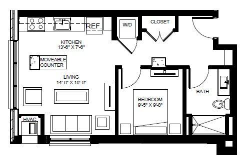 Modelo de apartamento: V5-ALlame para Precios1 Dormitorio, 1 Baño, 619 sq ftNo Disponible![]()