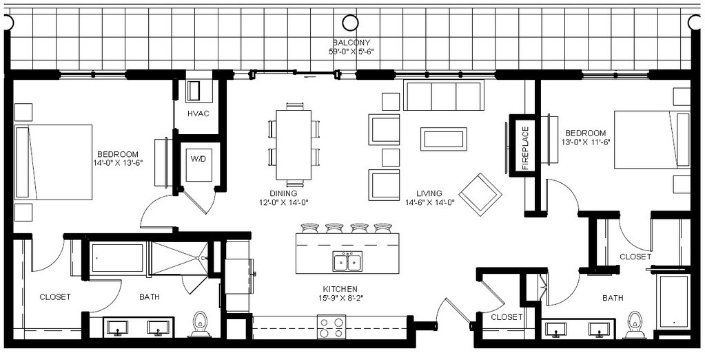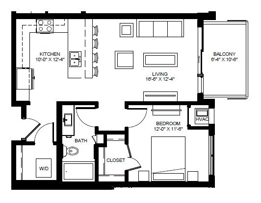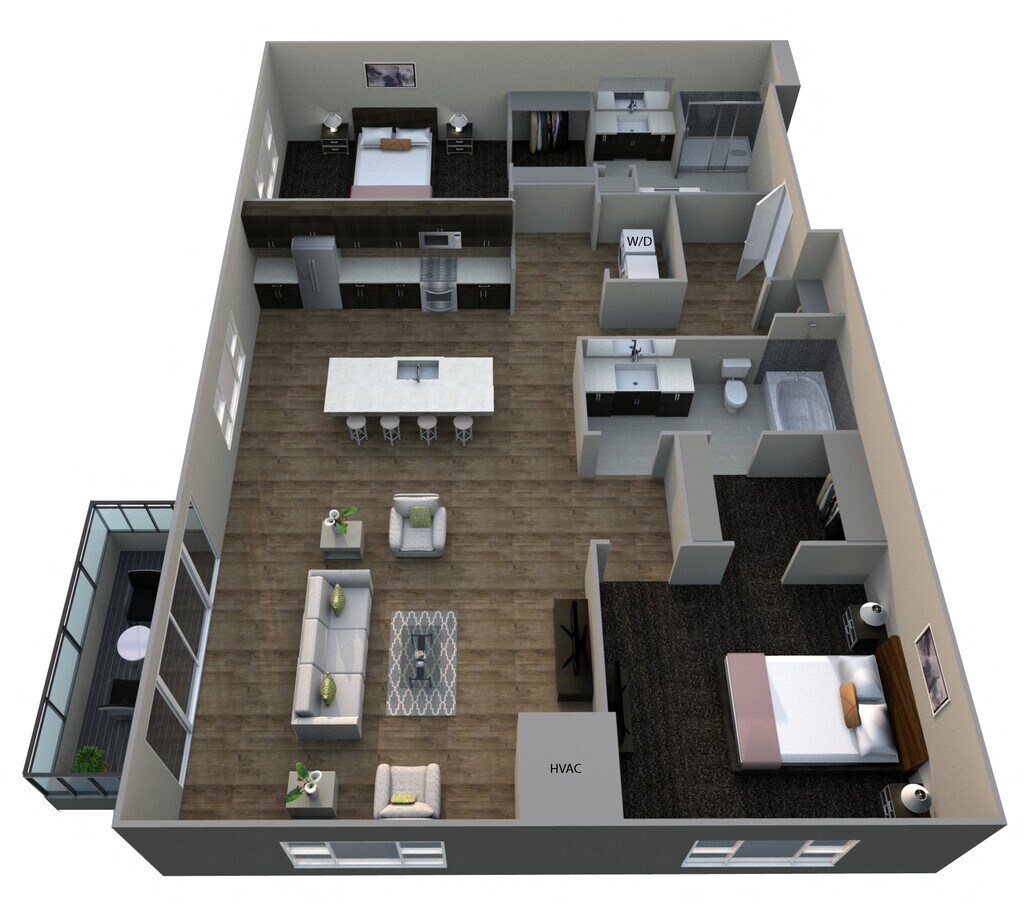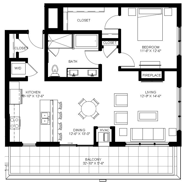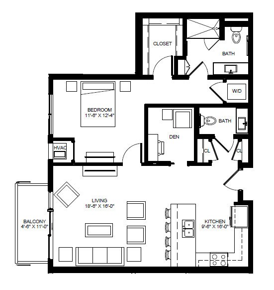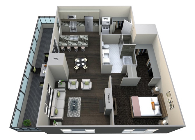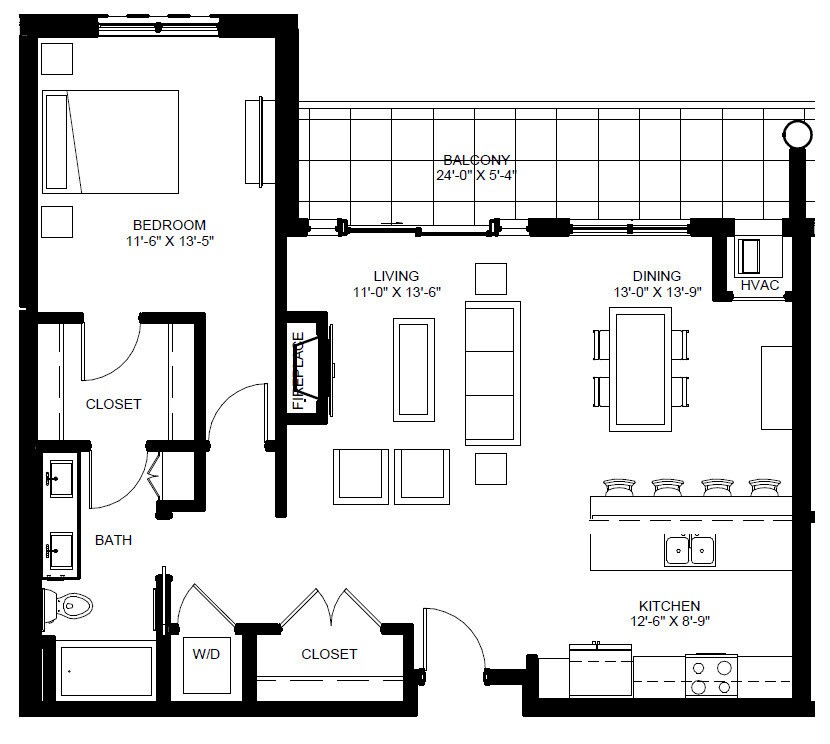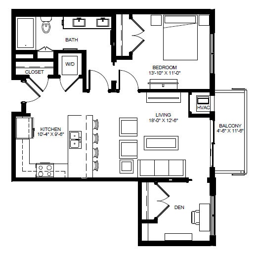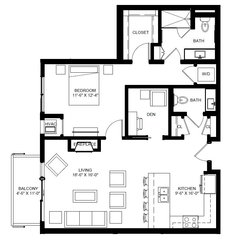 1 Dormitorio, 1 Baño, 619 pies²Galería del Modelo