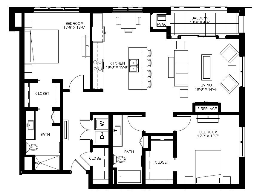 1 Dormitorio, 1 Baño, 706 pies²Galería del Modelo