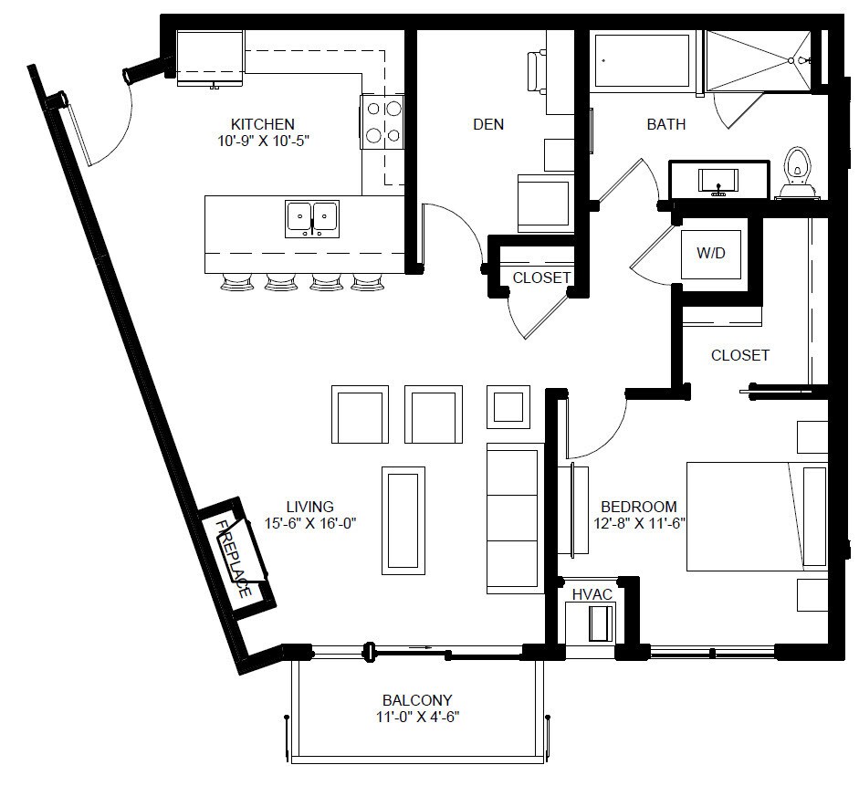 1 Dormitorio, 1 Baño, 514 pies²Galería del Modelo