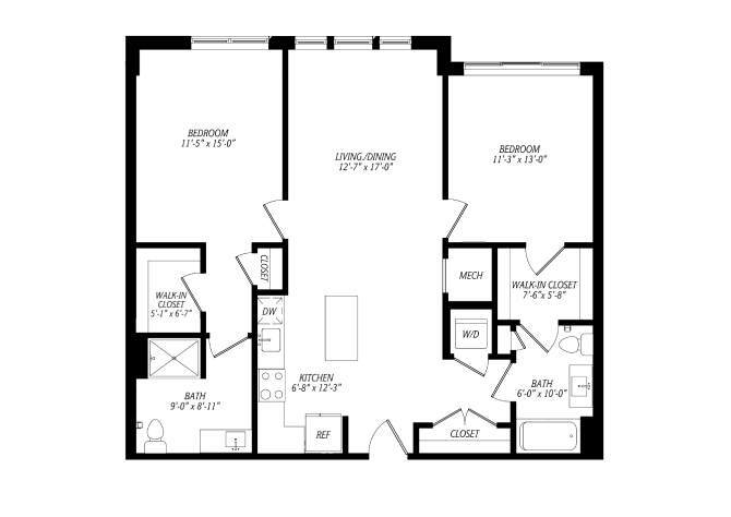 Modelo de apartamento: A01cDesde $2,5381 Dormitorio, 1 Baño, 750 sq ftDisponible November 22, 2025![]()