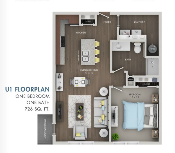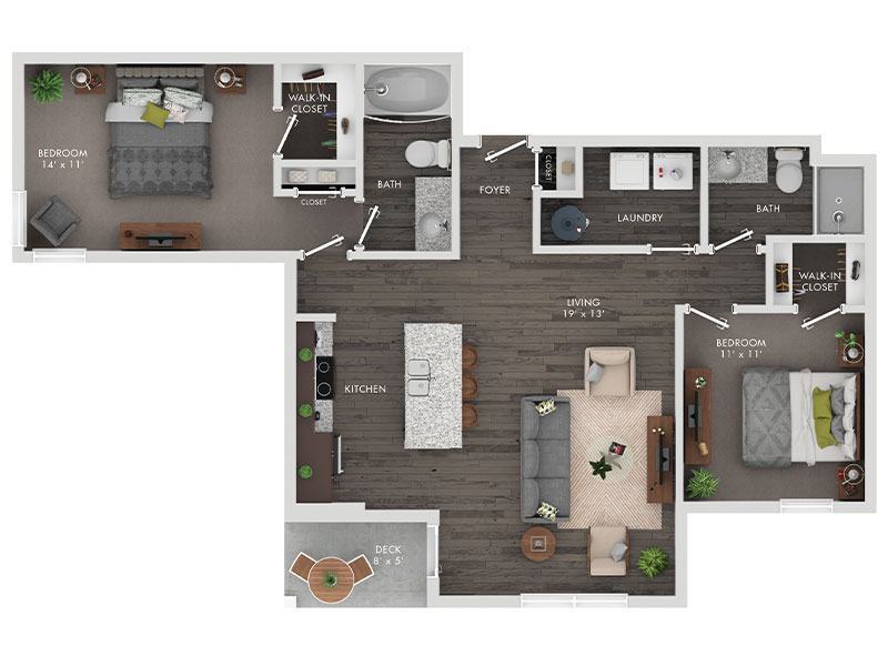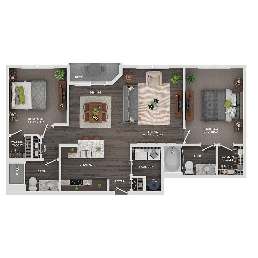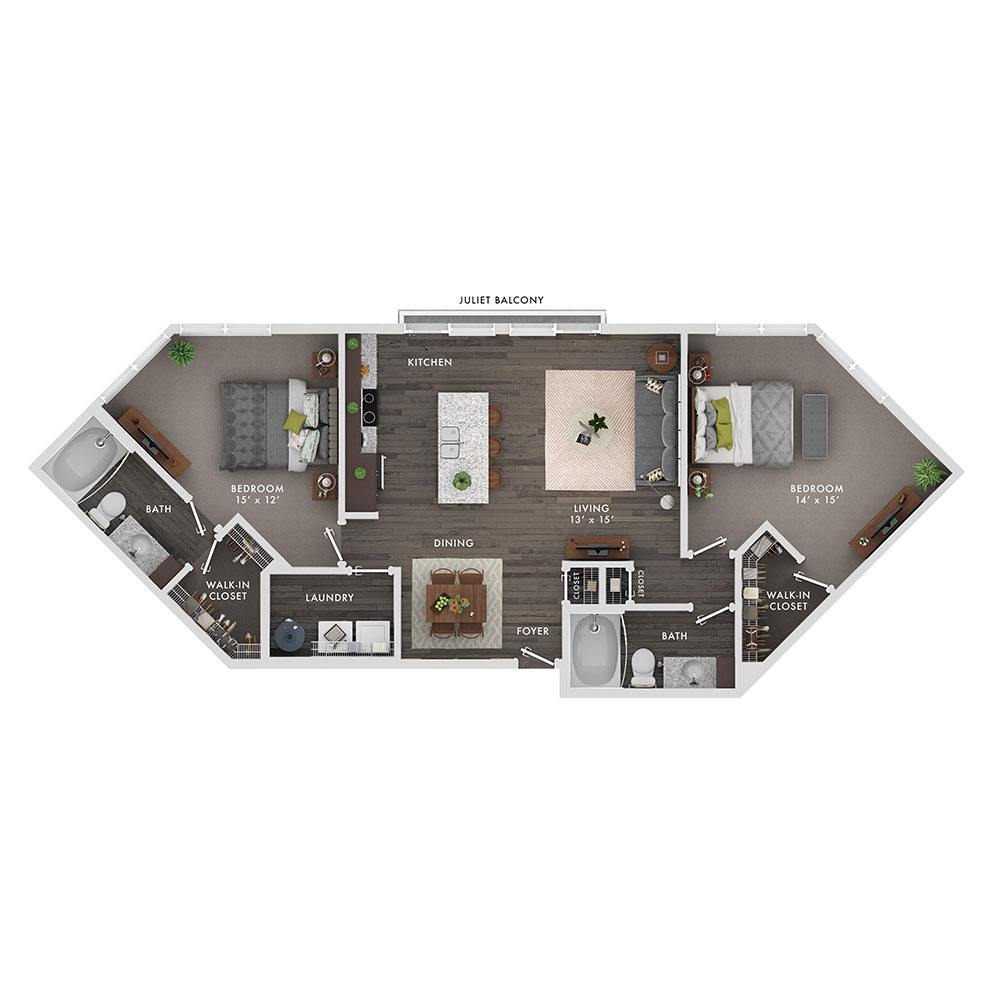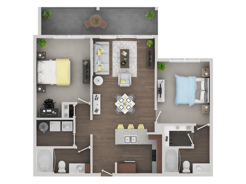 Modelo de apartamento: IrisDesde $1,4451 Dormitorio, 1 Baño, 746 sq ftDisponible Ahora![]()