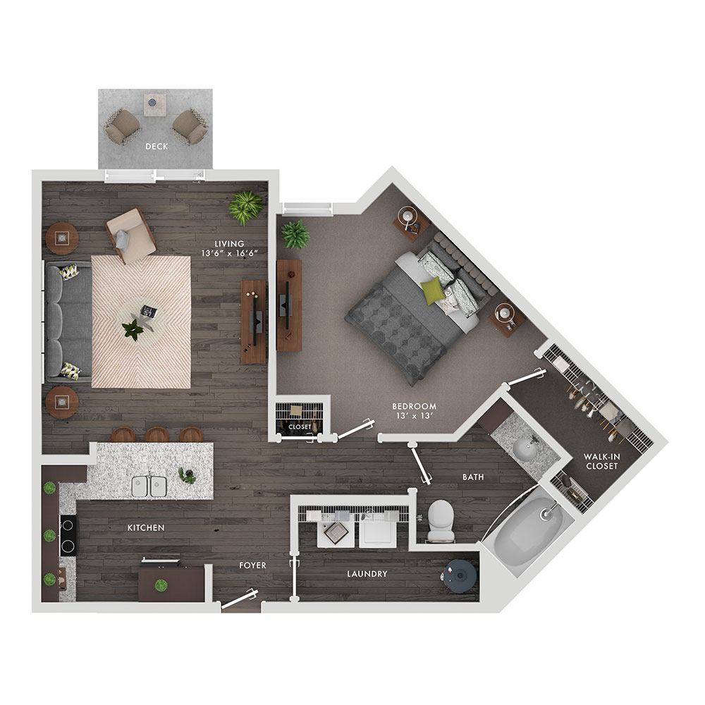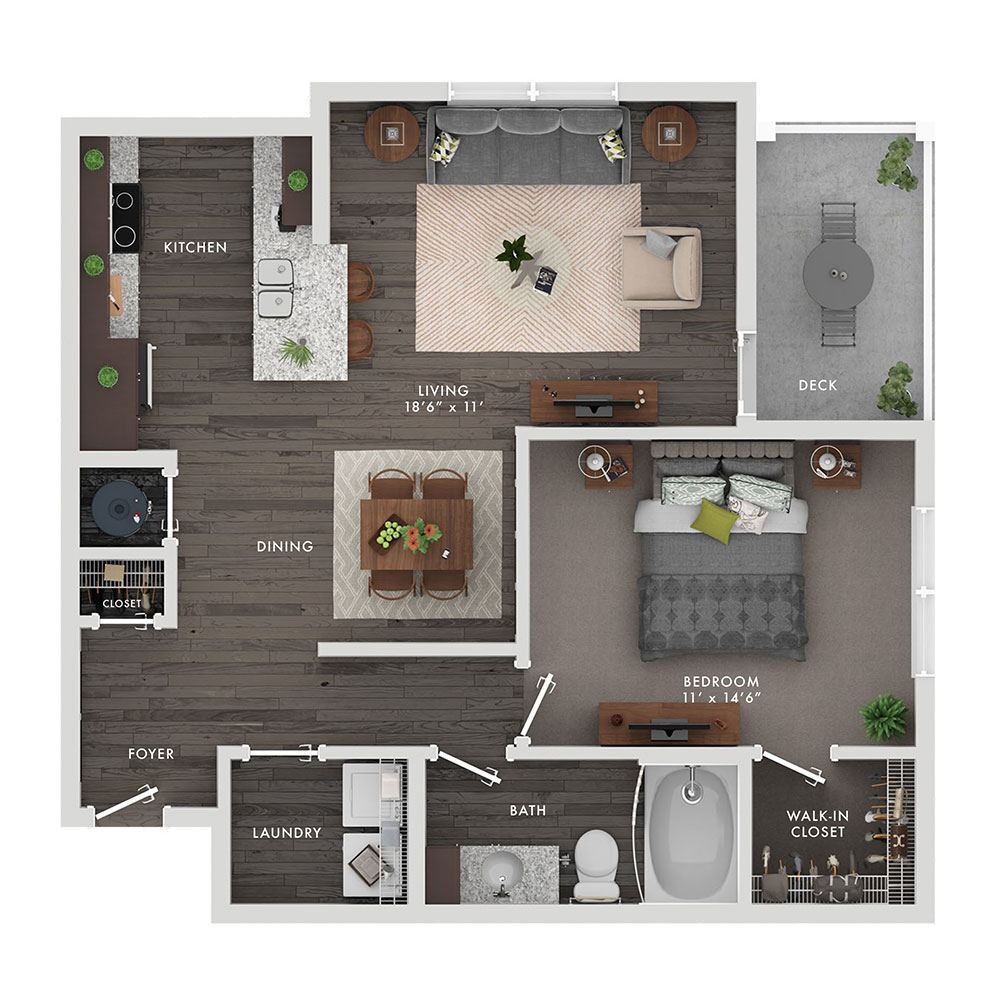1 Dormitorio, 1 Baño, 801 pies²Disponible AhoraGalería del Modelo