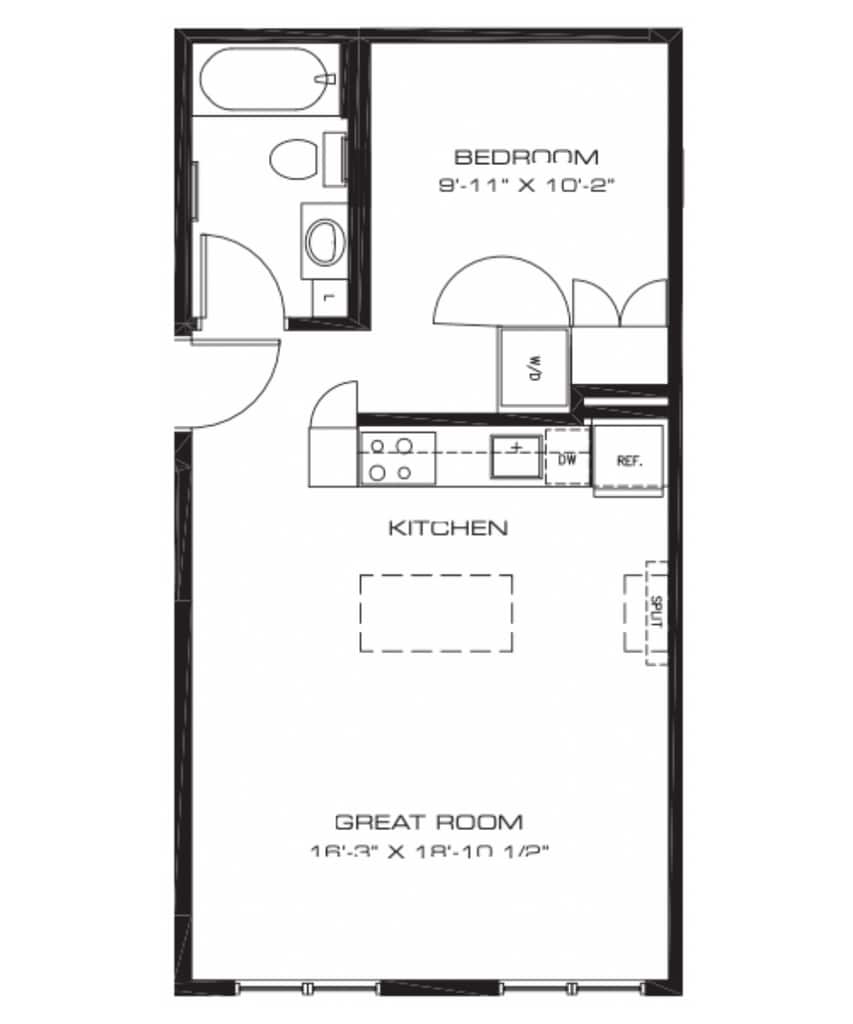 1 Dormitorio, 1 Baño, 557 pies²Precio Mensual TotalDisponible Dec 1Galería del Modelo