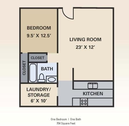 Modelo de apartamento: One Bedroom1 Dormitorio, 1 Baño, 754 sq ftNo Disponible![]()