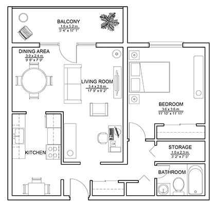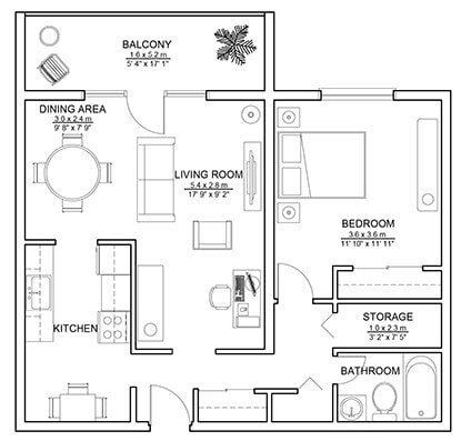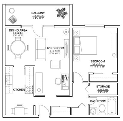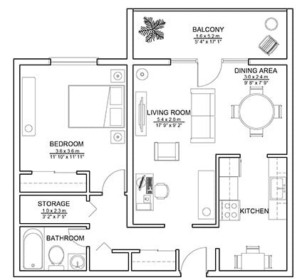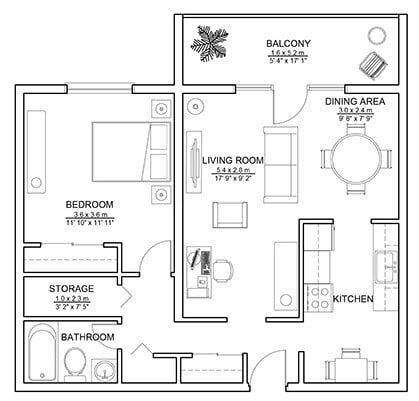 1 Bed 1 Bath - Plano 1 ![]()