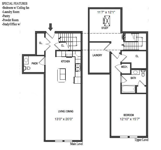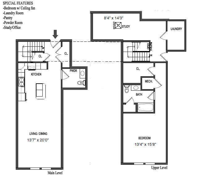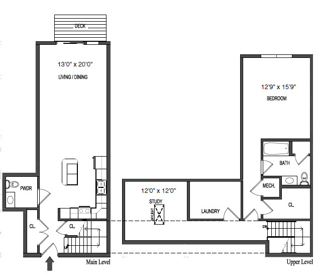 One Bedroom w/Study Duplex - Plano 4 ![]()