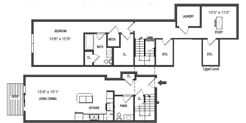 One Bedroom w/Study Duplex - Plano 5 2 Dormitorios