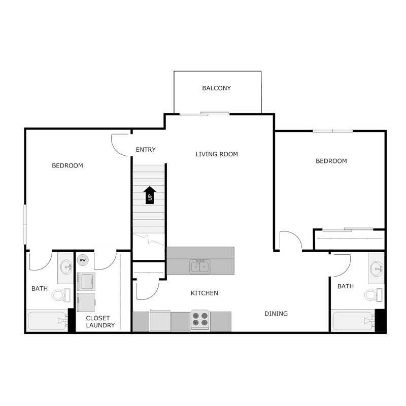 Modelo de apartamento: Upper 2 Bedroom Split$1,0752 Dormitorios, 2 Baños, 1145 sq ftNo DisponibleUpper 2 Bedroom Split - Plano 1