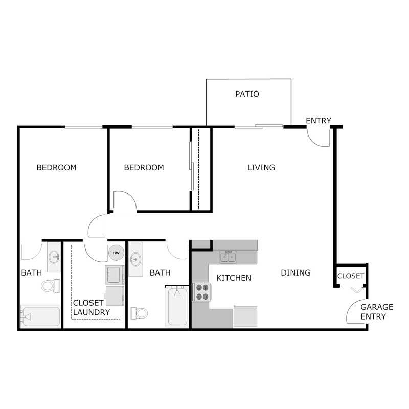 2 Dormitorios, 2 Baños, 1145 pies²El más grandeEsta opción tiene las unidades más grandes para este modeloGalería del Modelo