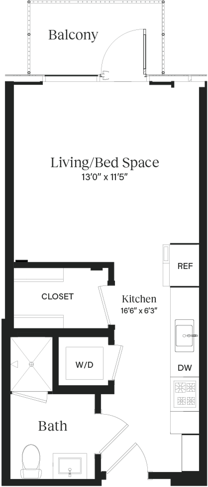 Estudio, 1 Baño, 413-418 pies²Disponible AhoraGalería del Modelo