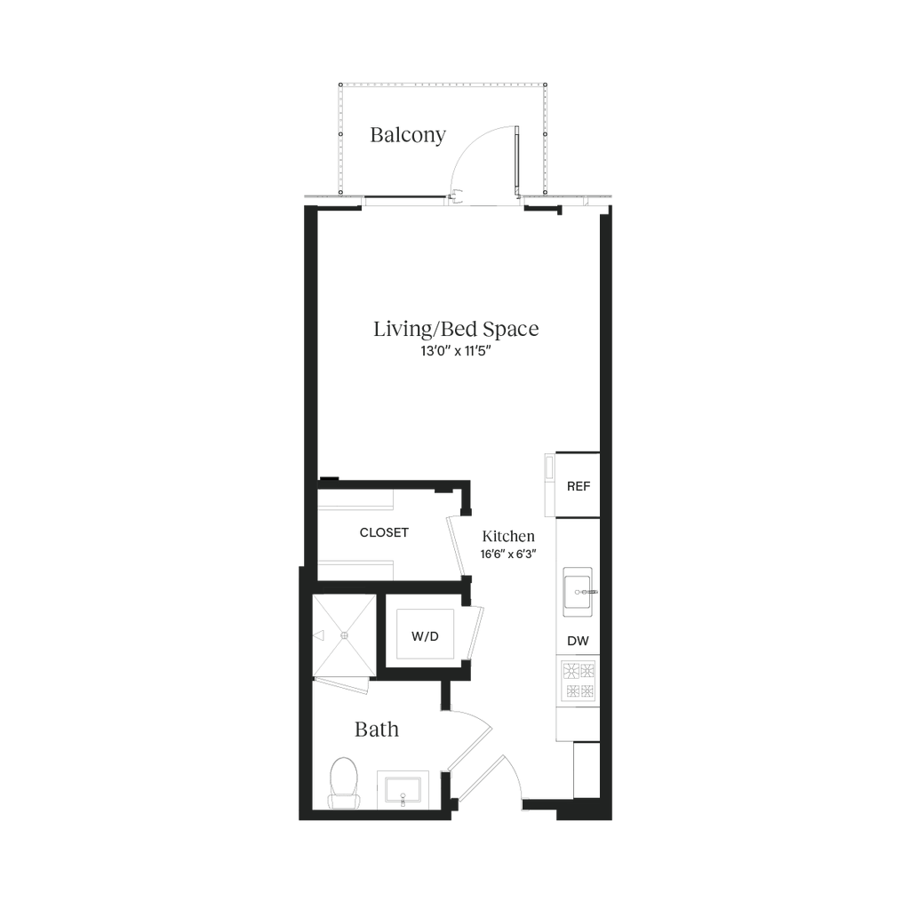 Estudio, 1 Baño, 413-418 pies²Precio Mensual TotalDisponible AhoraGalería del Modelo