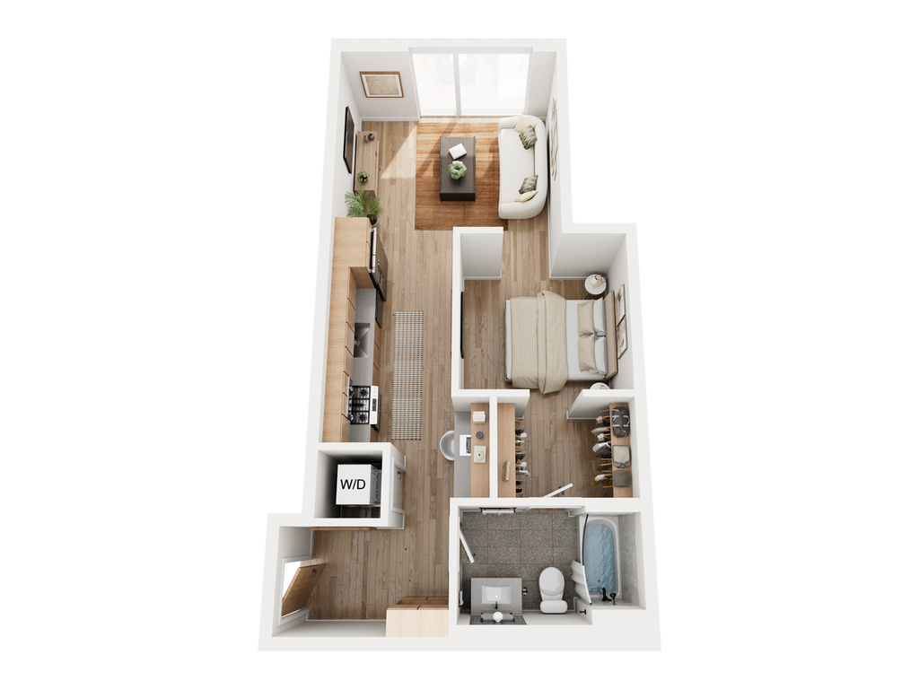 Modelo de apartamento: The ZilkerDesde $2,851Estudio, 1 Baño, 413-418 sq ftDisponible AhoraLos planos son representaciones artísticas. Todas las dimensiones son aproximadas. El producto y las especificaciones reales pueden variar en tamaño o detalle. No todas las características están disponibles en cada vivienda en alquiler. Por favor, consulta con un representante para obtener más detalles.