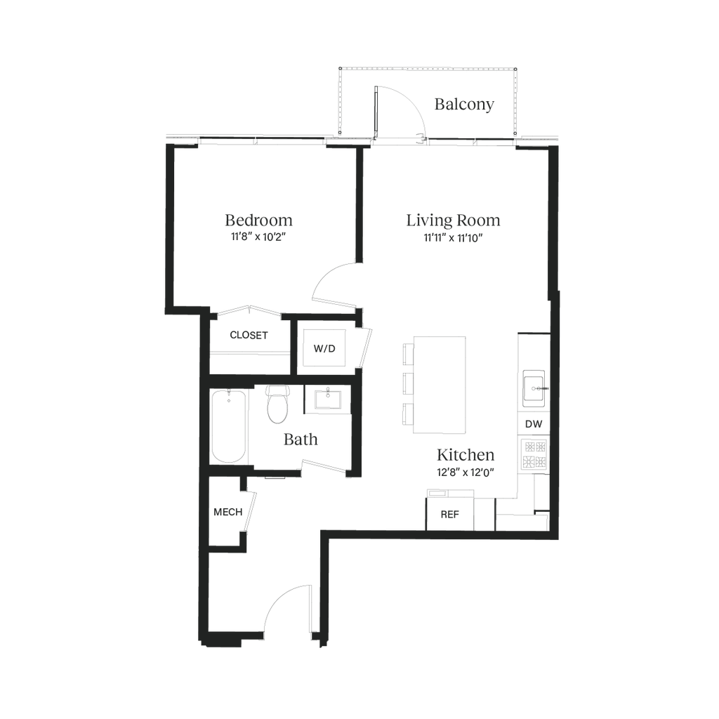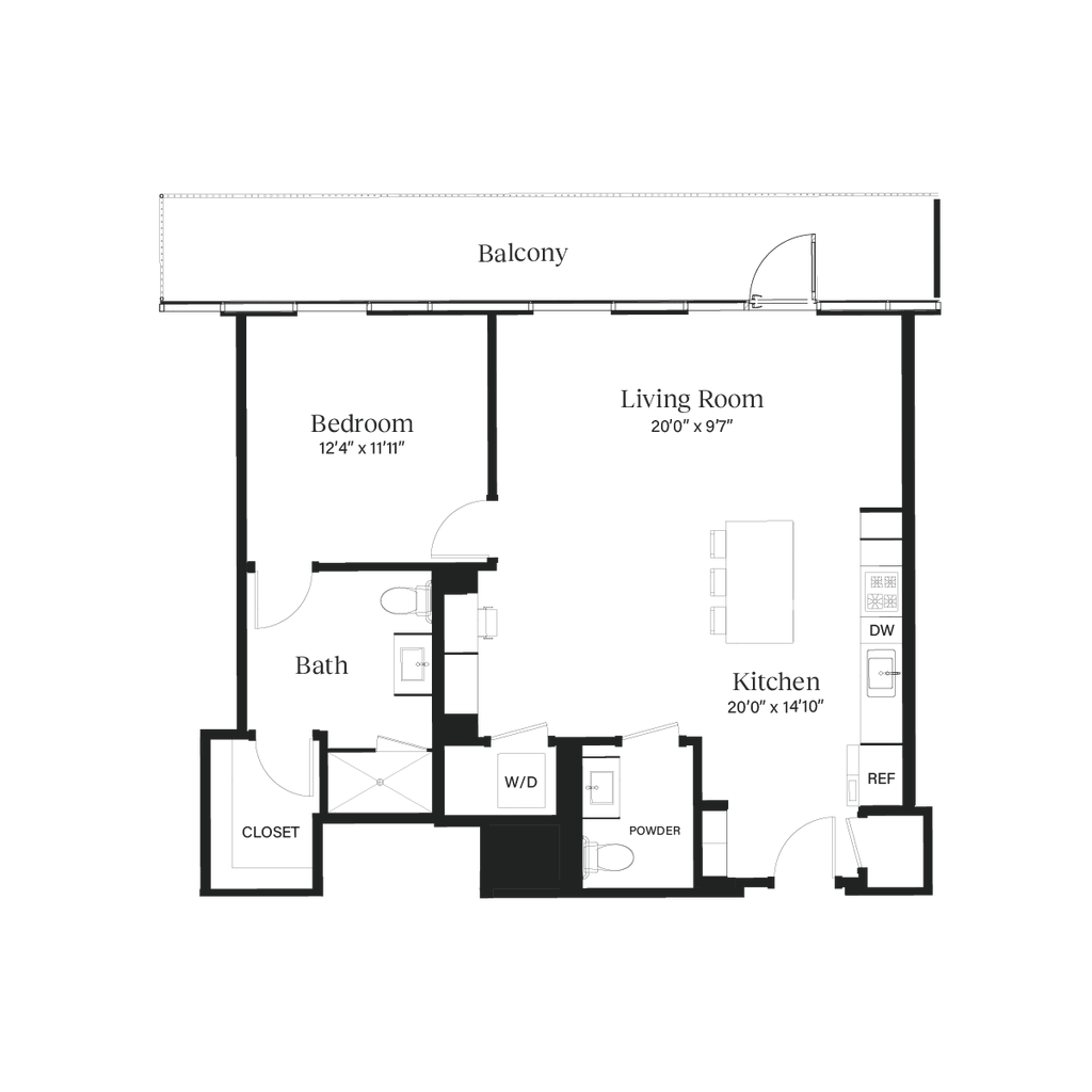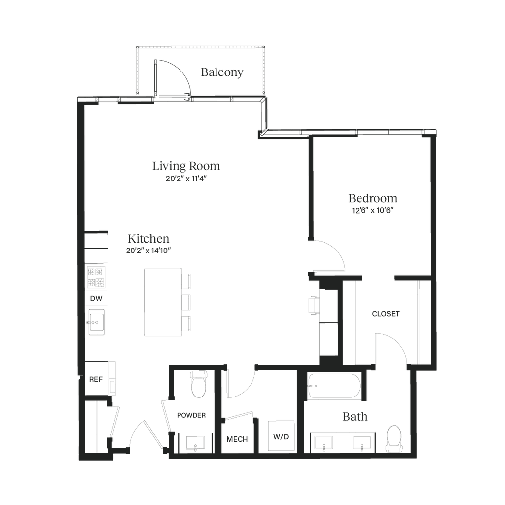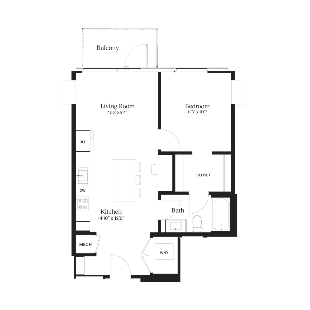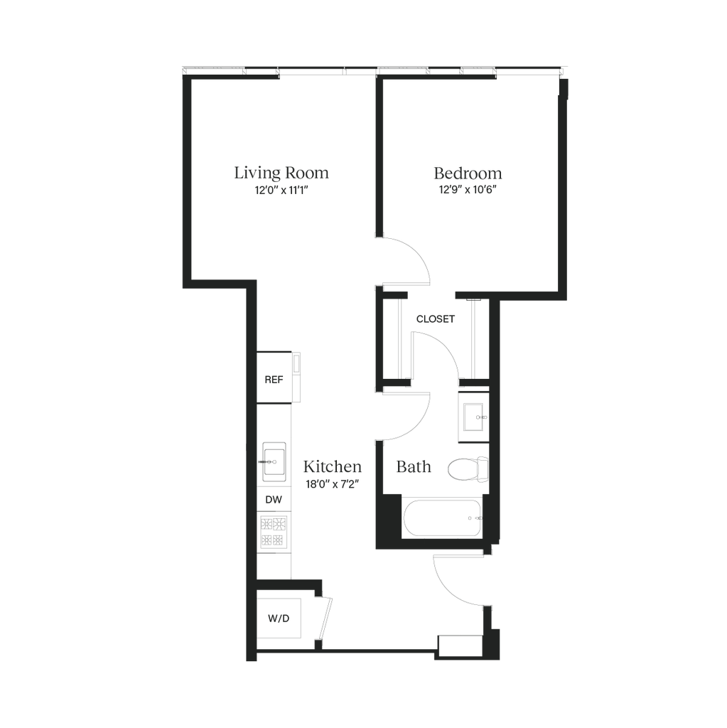 The Bungalow - Plano 1 Los planos son representaciones artísticas. Todas las dimensiones son aproximadas. El producto y las especificaciones reales pueden variar en tamaño o detalle. No todas las características están disponibles en cada vivienda en alquiler. Por favor, consulta con un representante para obtener más detalles.