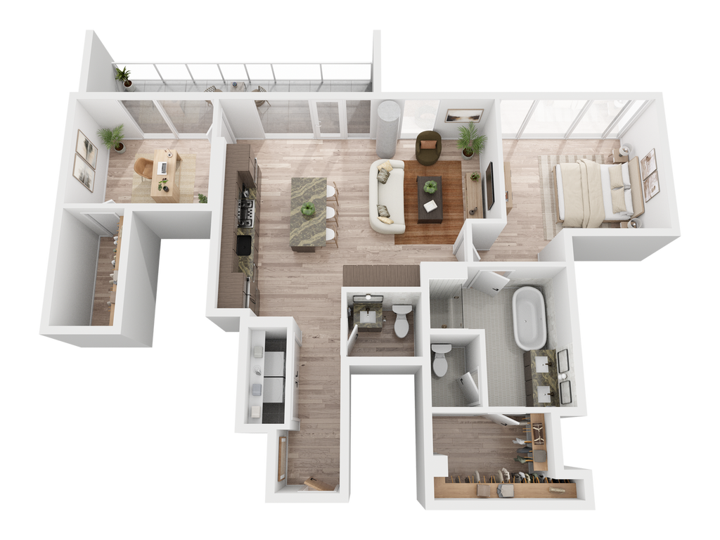 Modelo de apartamento: The BungalowDesde $2,671Estudio, 1 Baño, 421 sq ftDisponible AhoraLos planos son representaciones artísticas. Todas las dimensiones son aproximadas. El producto y las especificaciones reales pueden variar en tamaño o detalle. No todas las características están disponibles en cada vivienda en alquiler. Por favor, consulta con un representante para obtener más detalles.