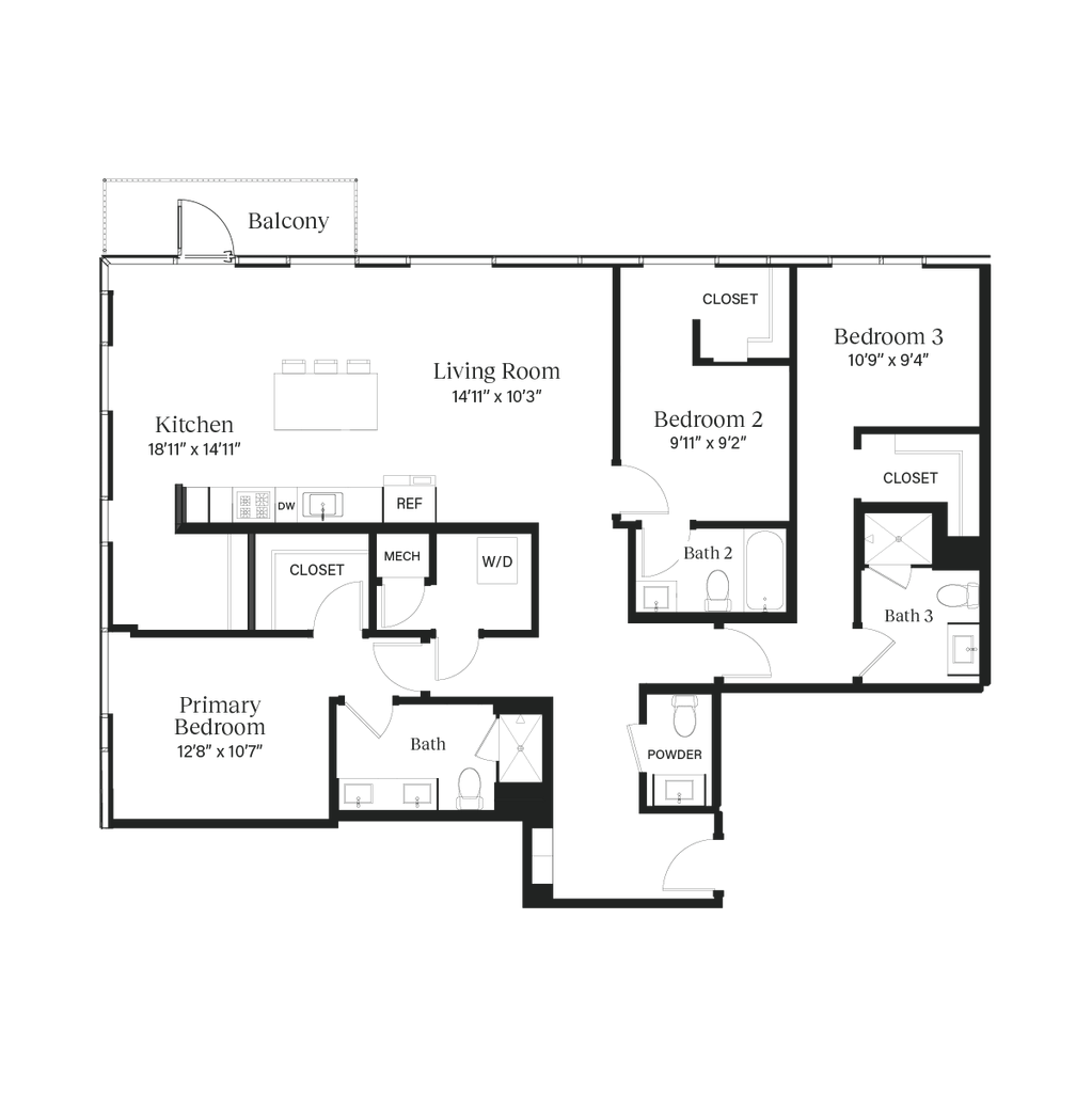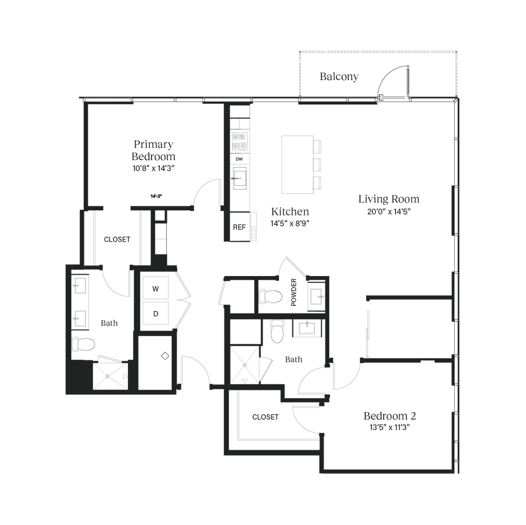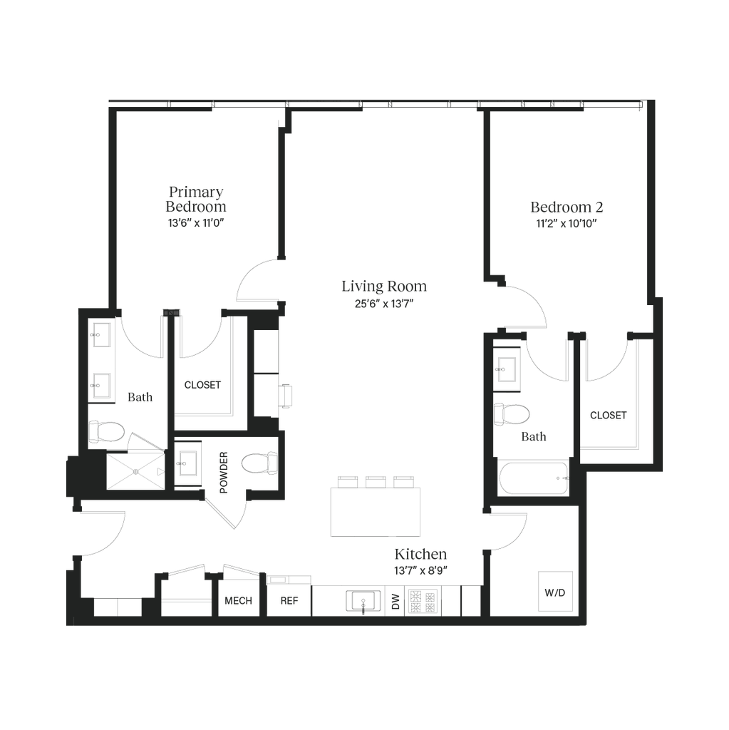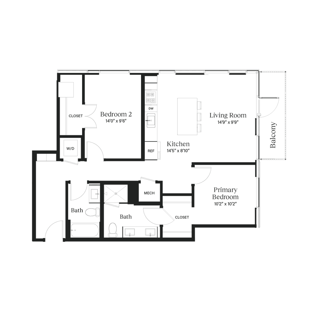 The Zilker - Plano 1 Los planos son representaciones artísticas. Todas las dimensiones son aproximadas. El producto y las especificaciones reales pueden variar en tamaño o detalle. No todas las características están disponibles en cada vivienda en alquiler. Por favor, consulta con un representante para obtener más detalles.