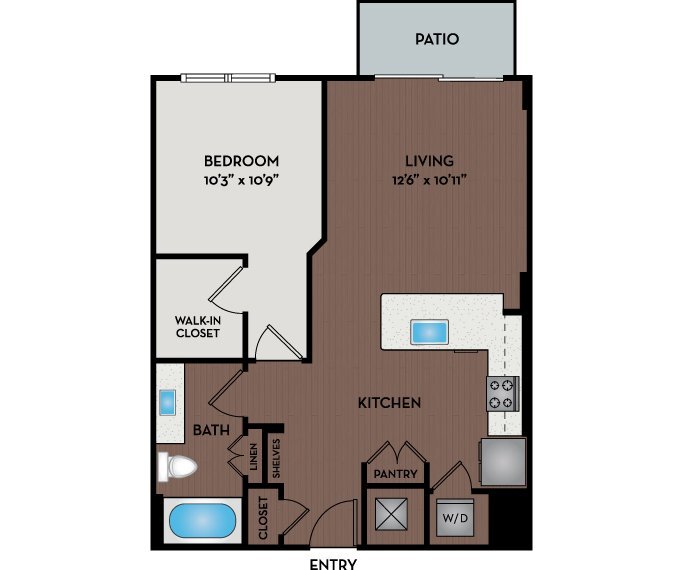 Modelo de apartamento: 01W2 - Income Limits ApplyLlame para PreciosEstudio, 1 Baño, 629 sq ftNo Disponible![]()