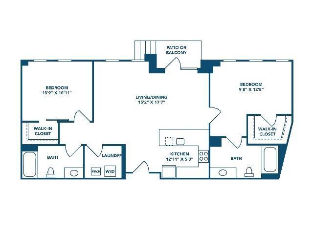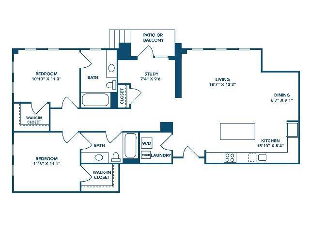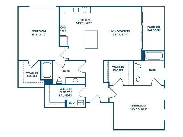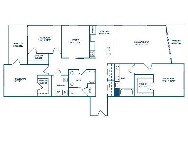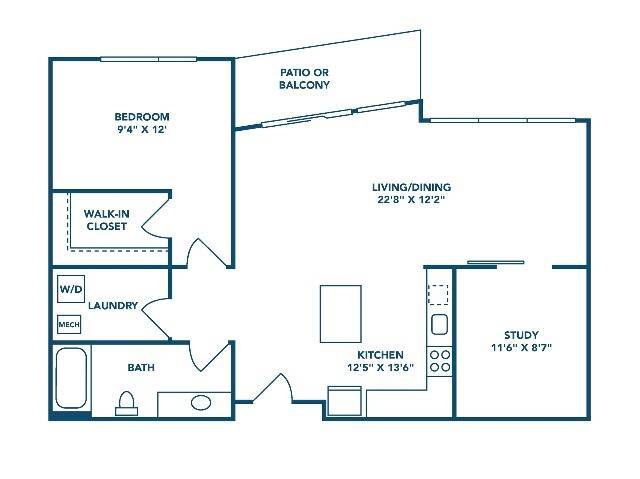 Modelo de apartamento: CascadeLlame para Precios1 Dormitorio, 1 Baño, 639 sq ftNo Disponible![]()