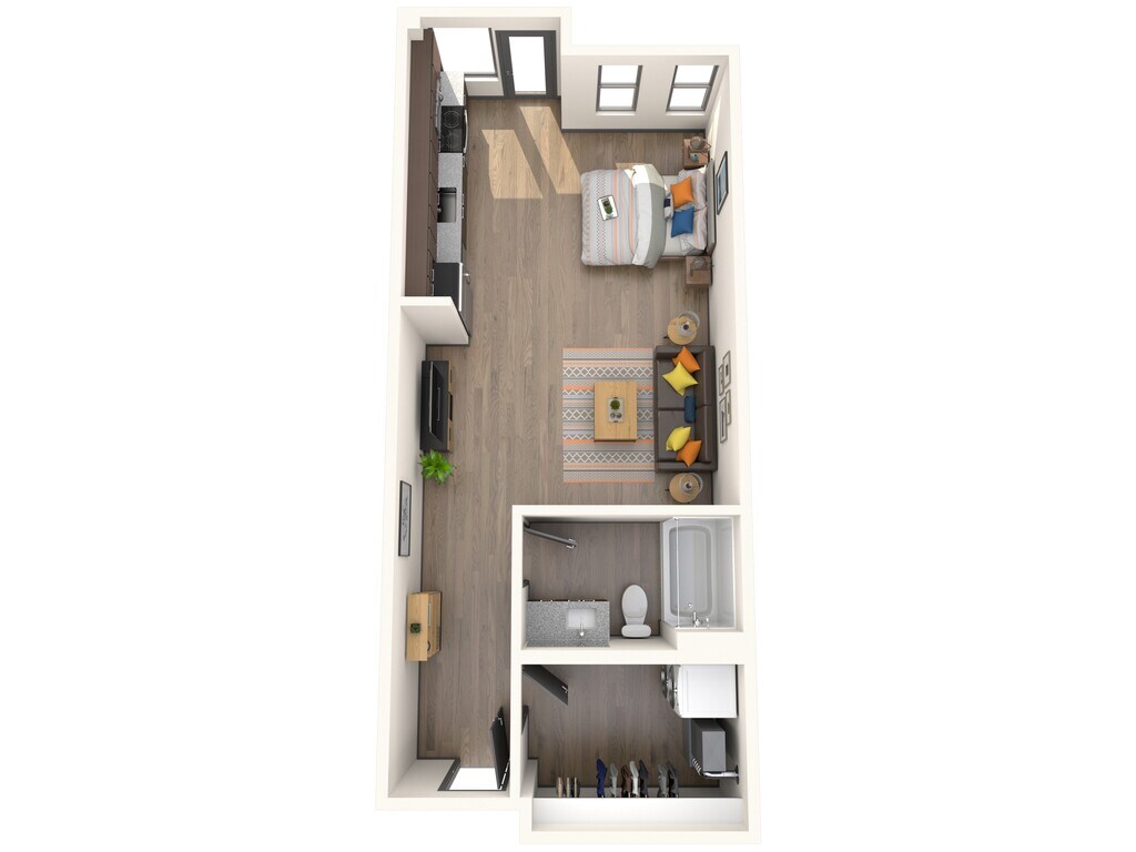 Estudio, 1 Baño, 501 pies²Disponible January 30, 2026El más grandeEsta opción tiene las unidades más grandes para este modeloGalería del Modelo