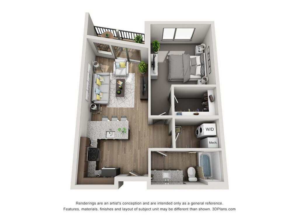 1 Dormitorio, 1 Baño, 639 pies²Galería del Modelo
