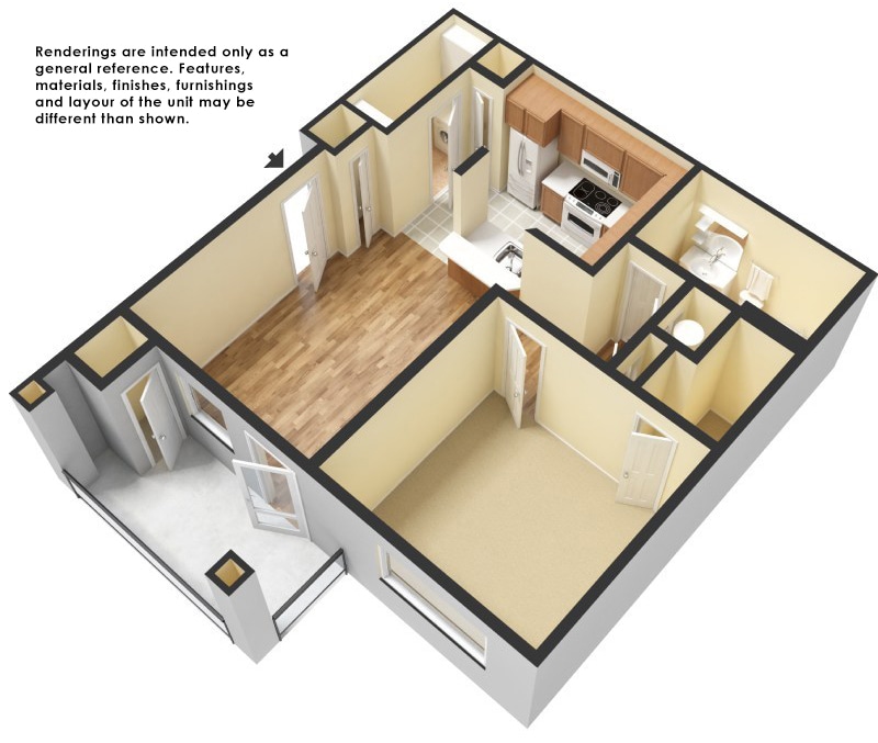 1 Dormitorio, 1 Baño, 645 pies²Galería del Modelo