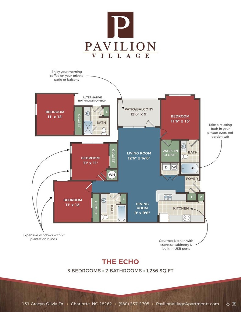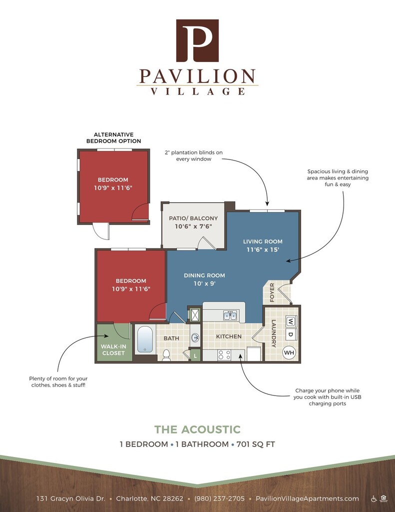 Pavilion Village ofrece apartamentos de 1 a 3 Dormitorios desde $1,159 con 647–1,236 pies cuadrados. Aquí está el precio actual y la disponibilidad: