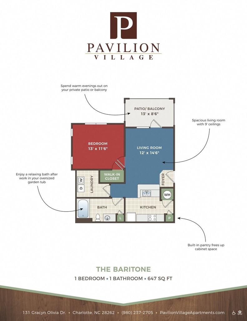 Modelo de apartamento: BaritoneDesde $1,1591 Dormitorio, 1 Baño, 647 sq ftDisponible November 7, 2025![]()