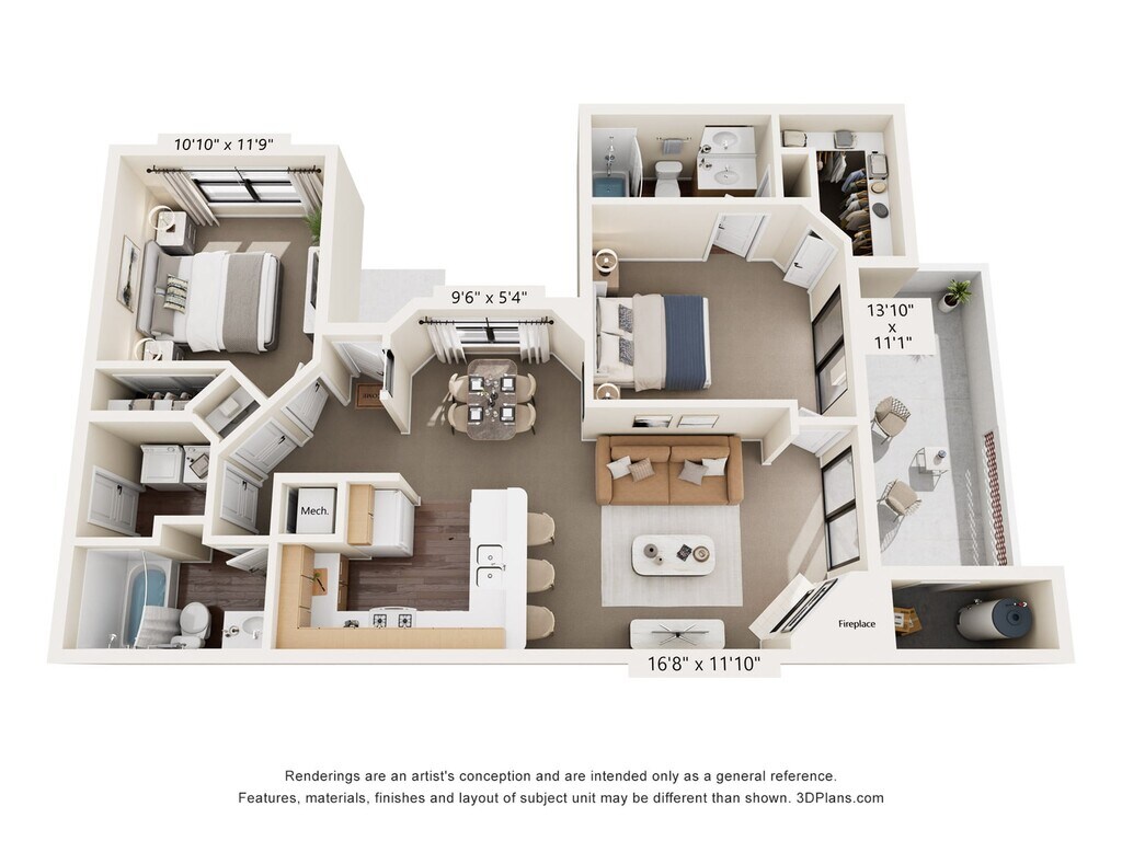 2 Dormitorios, 2 Baños, 1207 pies²Galería del Modelo