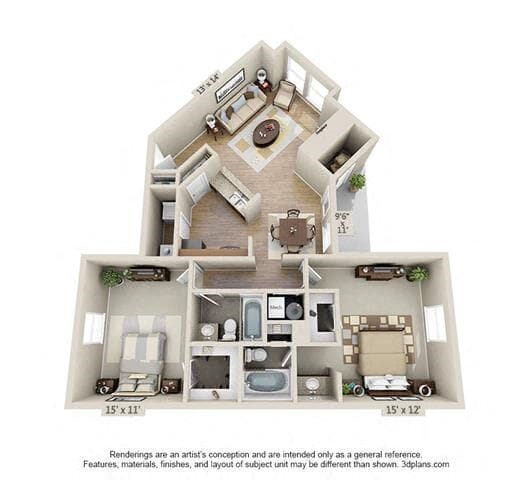 Modelo de apartamento: 2 Bed 2 Bath BDesde $2,2332 Dormitorios, 2 Baños, 1210 sq ftDisponible Ahora![]()