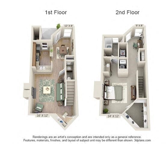 Modelo de apartamento: 1 Bed 1.5 BathDesde $1,5721 Dormitorio, 1.5 Baños, 975 sq ftDisponible Ahora![]()