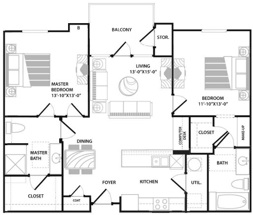 Modelo de apartamento: 60% 2 Bedroom 2 Bathroom Sm2 Dormitorios, 2 Baños, 1060 sq ftDisponible AhoraPlanosFotos![]()